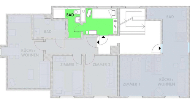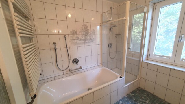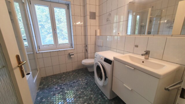 mit Badewanne, Dusche, Fön und Waschmaschine - Wohn-Küche