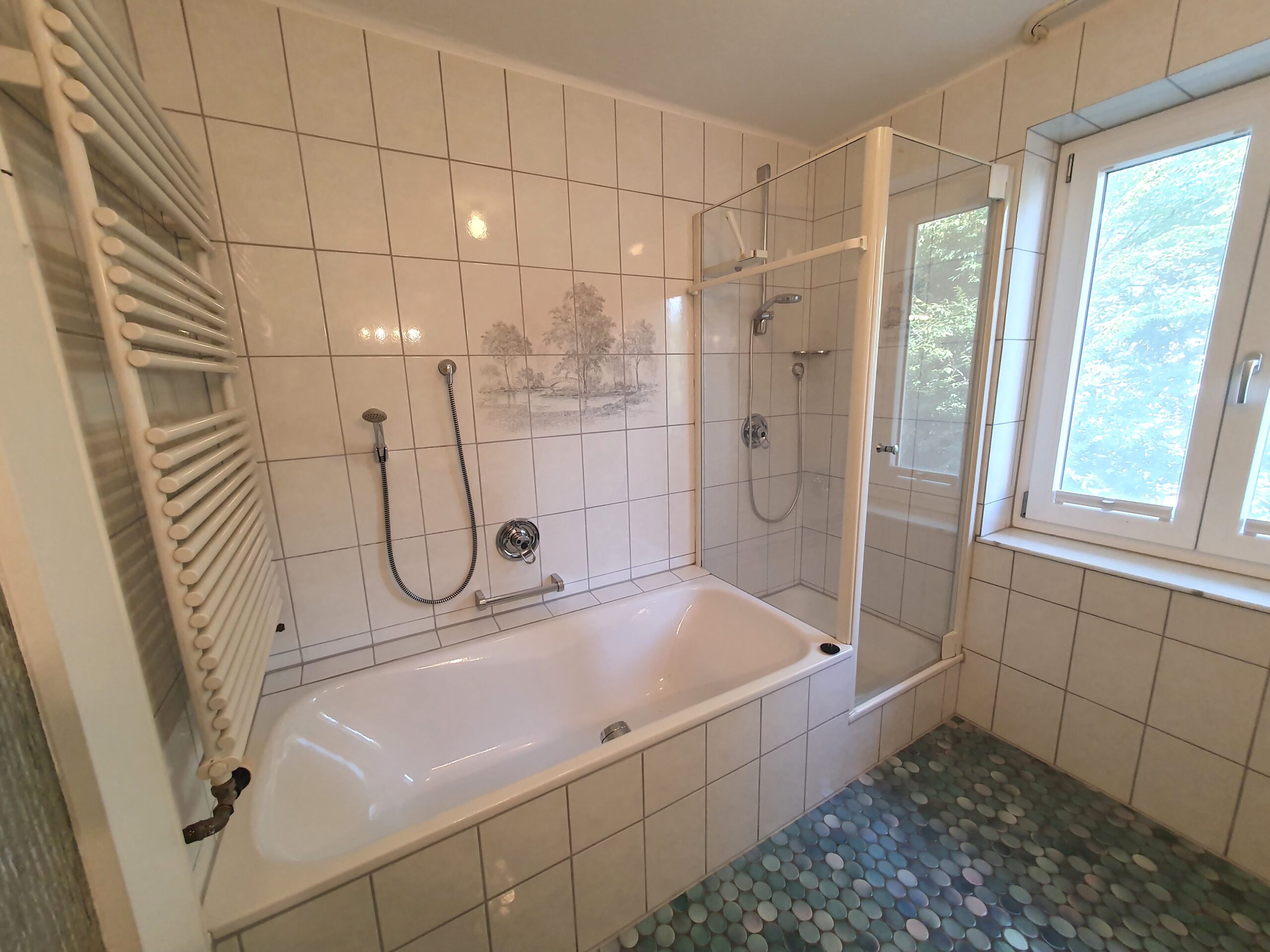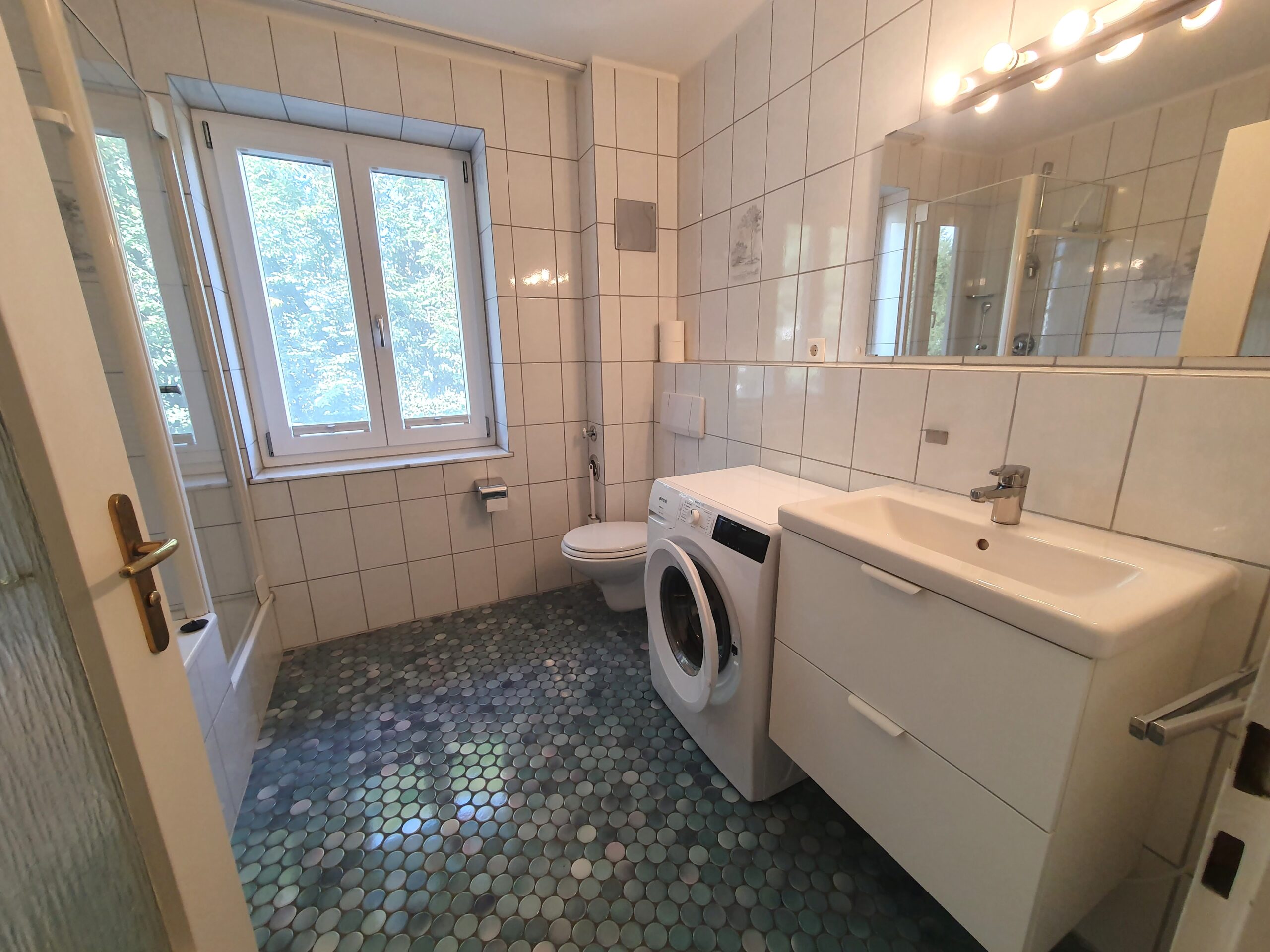 mit Badewanne, Dusche, Fön und Waschmaschine - Wohn-Küche