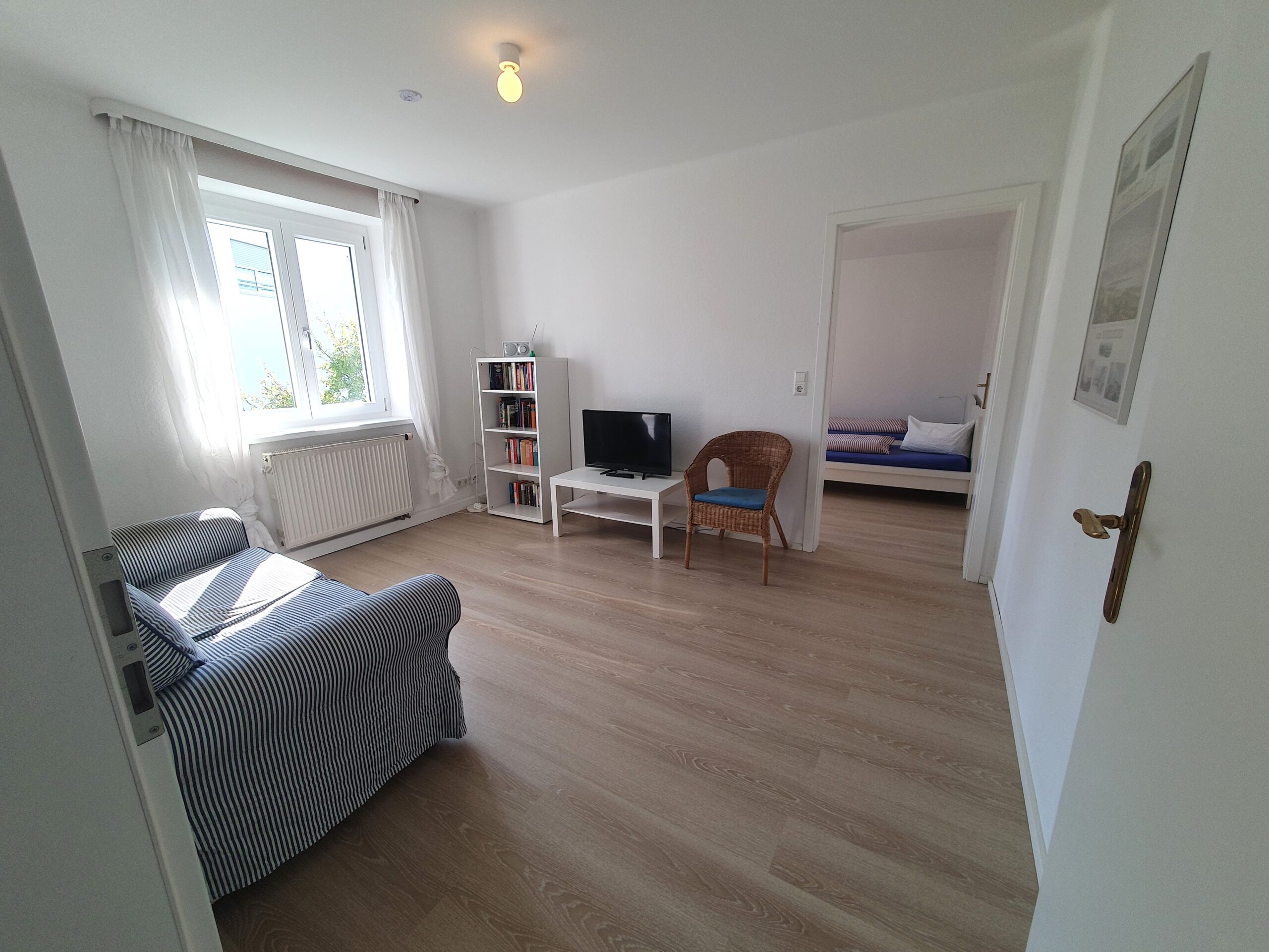 komplett ausgestattet, mit 4 Platten-Herd, Backofen, Kühlschrank (ohne Eisfach), Mikrowelle, Kaffeemaschine, Wasserkocher und Esstisch für bis zu 2 Personen - Wohnzimmer